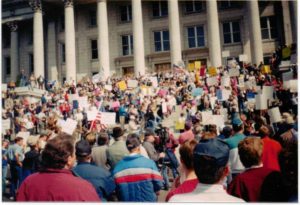 Following this, her movement picked up steam and she founded Women Against Gun Control. While other moms were spending time at the mall, Tobias was fighting for the Second Amendment. “I’m just so passionate about rights cause you can’t buy rights at the mall!” she joked. She called on the wives, mothers, sisters and daughters of Utah to stand up for their right to protect their families, and they joined together to protest gun control. She fought back against those who would suggest just calling the police saying, “I don’t want to just be a house wife who can only defend herself with a broom!”